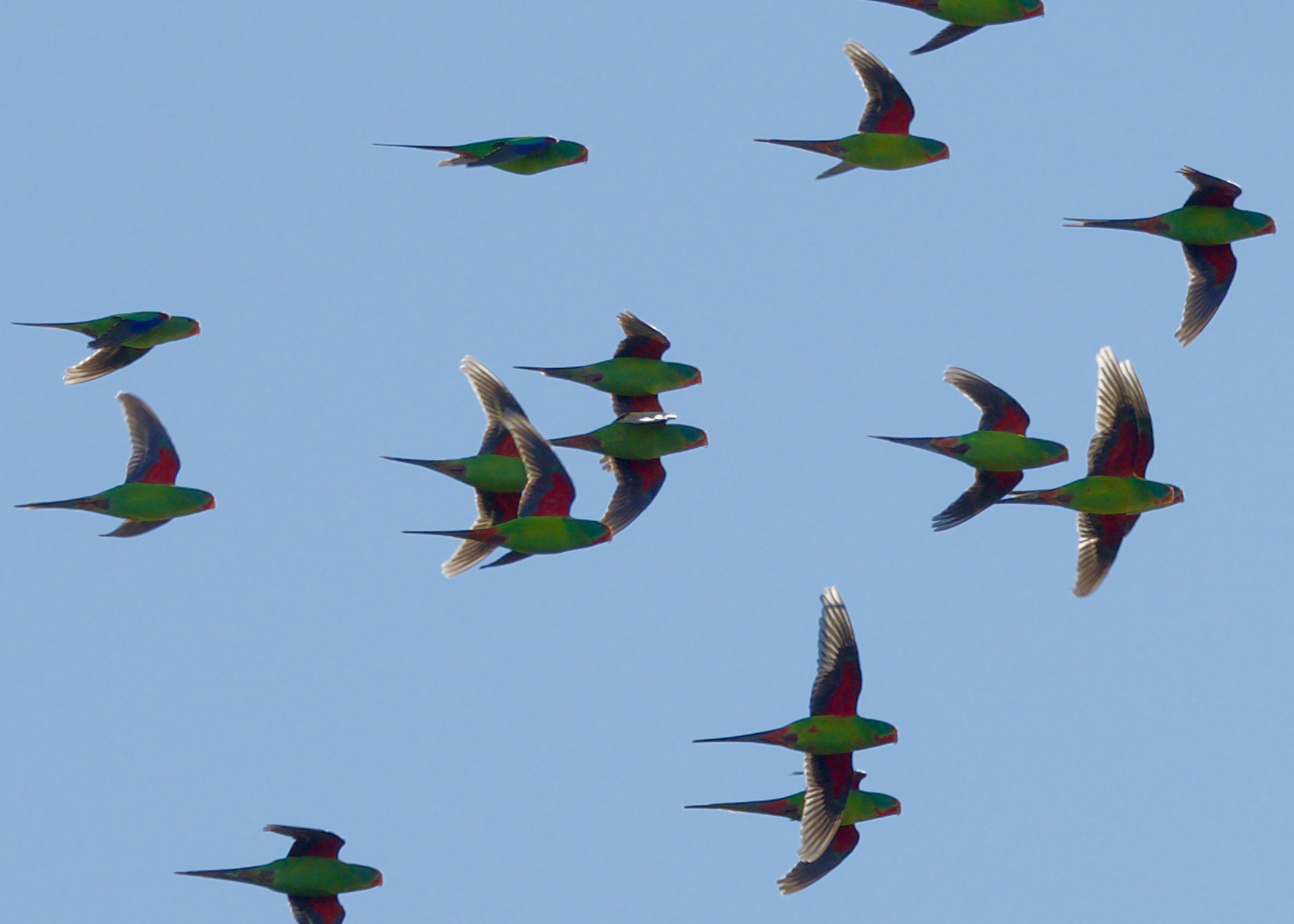 We are always on the lookout for both new and familiar birds. EcoGipps is particularly excited to make sightings of Swift Parrots, a prattle of these beautiful parrots seen in the feature image. Swift Parrots are endangered in Victoria, New South Wales and Tasmania and are listed as Critically Endangered nationally.